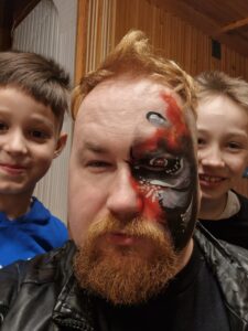 Mały, ale wariat. Horda dzieci może mieć z nim wspaniałą zabawę godzinami, a on nawet się nie spoci (chyba). Spec od gier, w tym planszowych, i wszelkich bajerów technicznych (drukarka 3D, roboty, lasery). Uwielbia muzykę lat 70.i 80., filmożerca i miłośnik fantastyki. Kopalnia ciekawostek historycznych i naukowych.